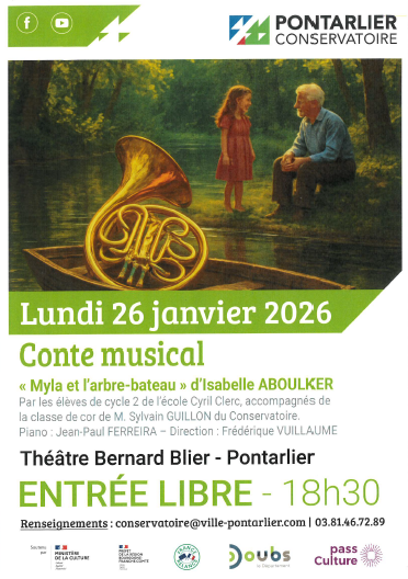 Nous remercions également chaleureusement la municipalité pour son partenariat avec le Conservatoire de Pontarlier et pour la mise à disposition du théâtre Bernard Blier, qui a permis d’accueillir ce spectacle dans des conditions idéales.